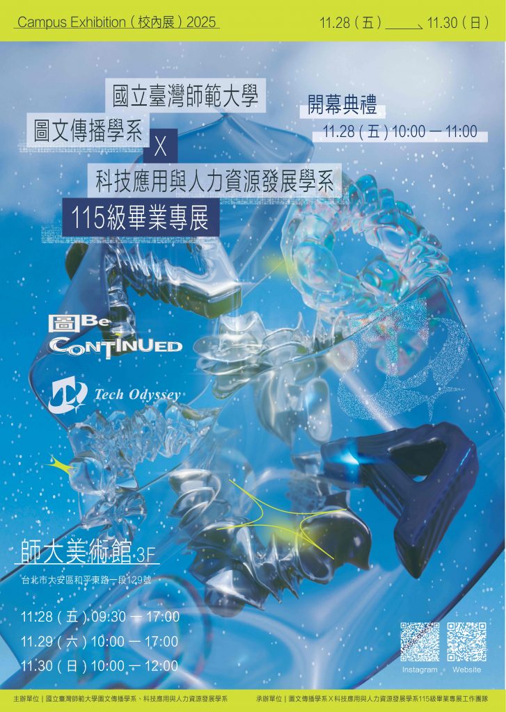 「Tech Odyssey」是我們這次畢業專題展覽的主題,象徵一場探索科技無限可能的旅程。展覽融合了當代科技與人文思維,展現創新實踐所勾勒出的未來藍圖。參觀者將猶如置身於科技航行之中,隨著展品的引導,穿梭於智慧應用、互動體驗與數位藝術的空間,親身感受科技如何突破疆界,並為人類生活開創嶄新的想像與可能性。
